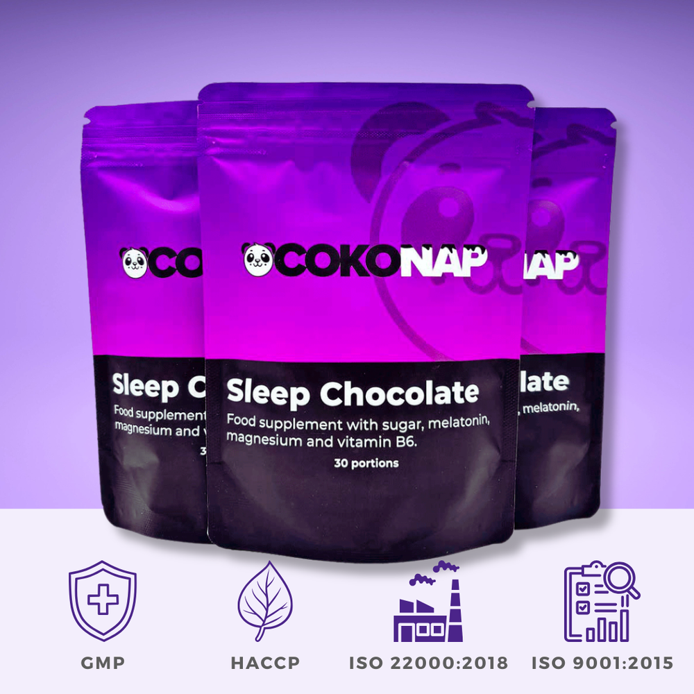 Cokonap Schlafschokolade ist ein Nahrungsergänzungsmittel in Schokoladenform, das Zucker, Melatonin, Magnesium und Vitamin B6 enthält. Sie ist als Teil eines abendlichen Entspannungsrituals gedacht, um Ihnen zu helfen, den Tag sanft ausklingen zu lassen.